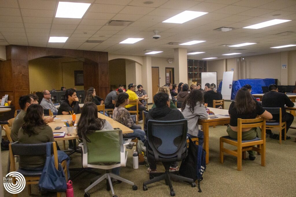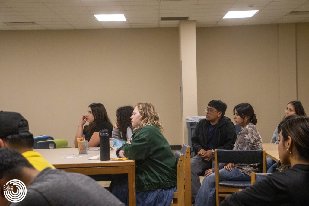 UTRGV students listen to Raquel Gutiérrez at the “Borderlands Poetics Workshop & Reading” event April 7 at the UTRGV Library on the Edinburg campus. Logan Huizar/Pulse