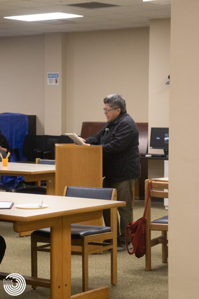 Author Raquel Gutiérrez reads their book “Brown Neon” at the “Borderlands Poetics Workshop & Reading” April 7 at the UTRGV Library on the Edinburg campus. Logan Huizar/Pulse